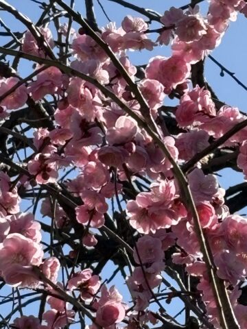 枝垂れ梅が満開になりました。