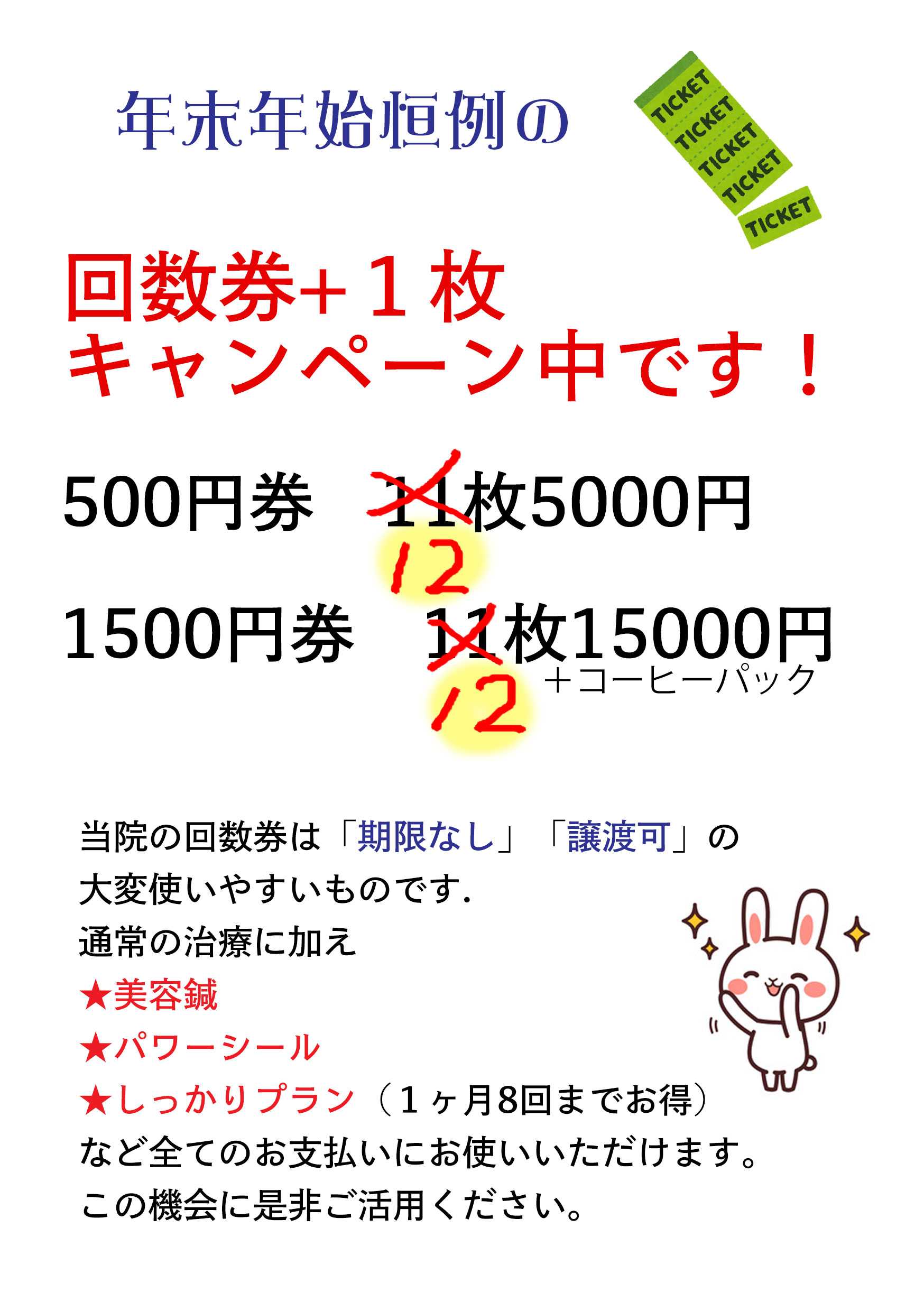 年末恒例の回数券増量キャンペーンを開催いたします!✨
